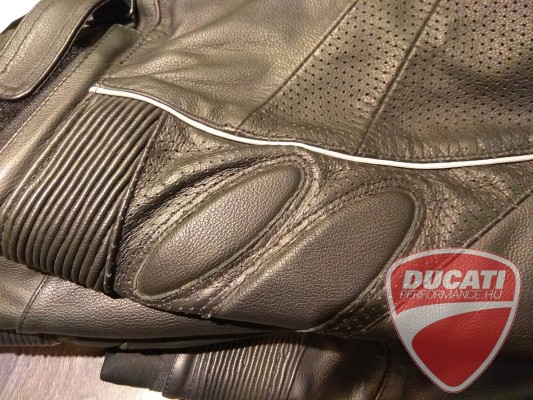 Leírás: RAKTÁRON | DZSEKI | perforált bőr a frontoldalon | kivehető MAWUS bélés | AERO púp | nagy felületű Kevlar strech betétek | gyakorlatilag egy versenyruha felső része, de a hossza a rendes utcai kabátoké így a versenyruhák nyújtotta védelem és mozgásszabadság az utcai dzsekik használhatóságával kombinálódik | állítható derékbőség | az oldalán a hónaljtól a kabát aljáig tartó bőrsztreccs betét van, hogy tökéletesen illeszkedjen a törzsünkre | NADRÁG | 1,4mm dél – amerikai marhabőr – PERFORÁLT | dupla bőrréteg a csípőnél, ülepnél, térdnél | új szerkezetű bőrsztreccs a tréd felett ( nagyobb mozgásszabadság ) | lábak között, a vádlinál és a térd hajlatban Schoeller Keprotek kevlár sztreccs betétek | csípőprotektor | farokcsont védelem | új szerkezetű, nagyon nagy felületű bőrsztreccs a derék vonalon, mely majdnem körbeér | neoprene betét a derék vonalban – nagyobb kényelem | perforált MAWUS ( antiallergén jól szellőző tapadásmentes anyag ) bélésanyag | felhúzott derék( szélvédelem ) | dupla tépőzár a derékbőség beállítására | dzsekihez körben hozzázipzározható ( japán YKK cipzár )